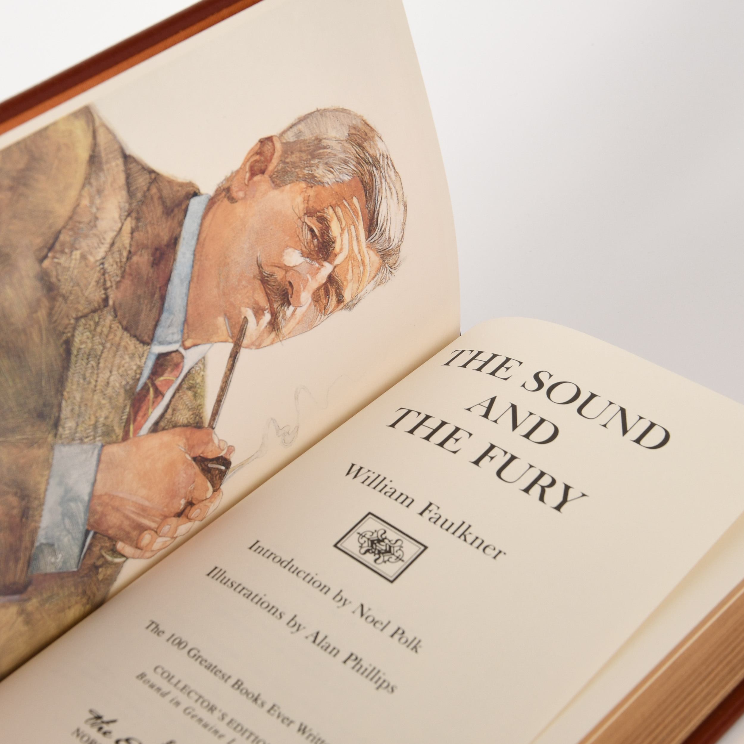 This Easton Press edition presents William Faulkner’s The Sound and the Fury, the 1929 modernist masterwork that charts the decline of the Compson family, once-prominent Mississippi aristocrats now crumbling into dysfunction and poverty.