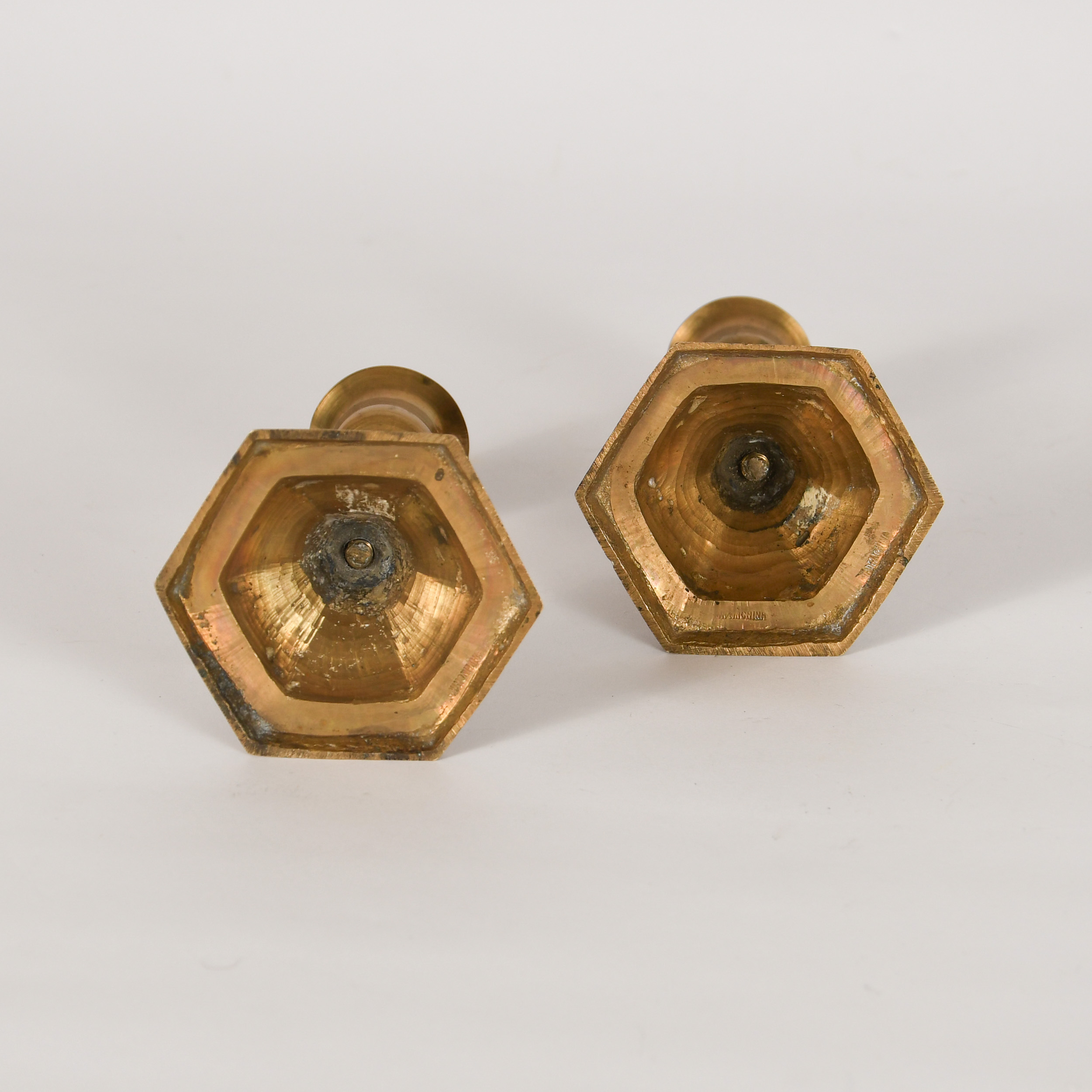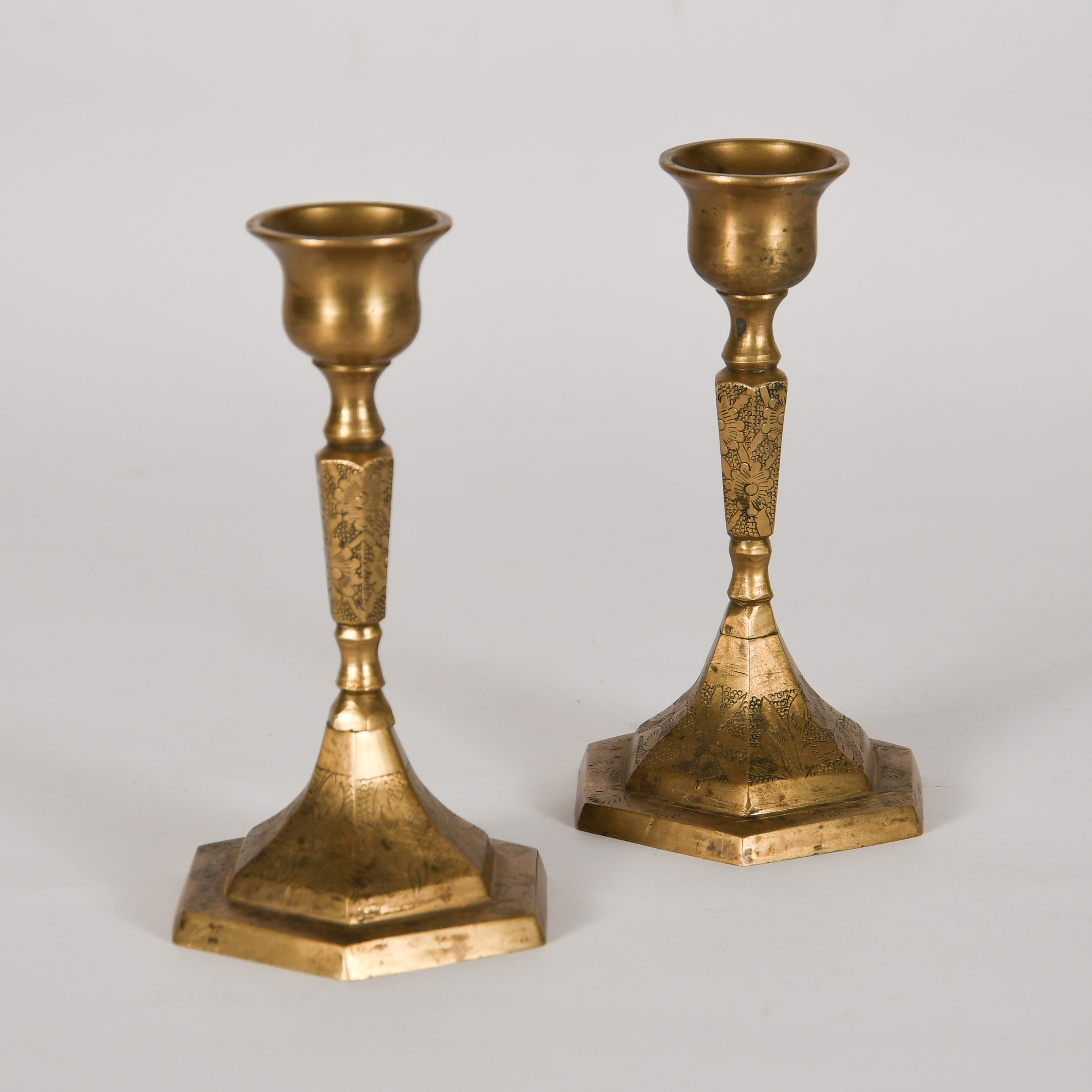 - Small Brass Candlesticks with Ornate Detailing
