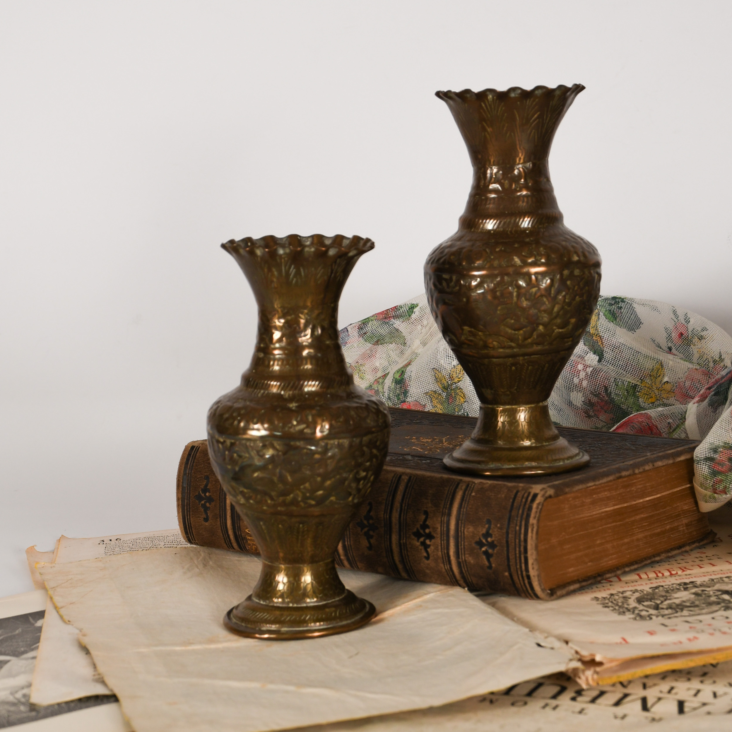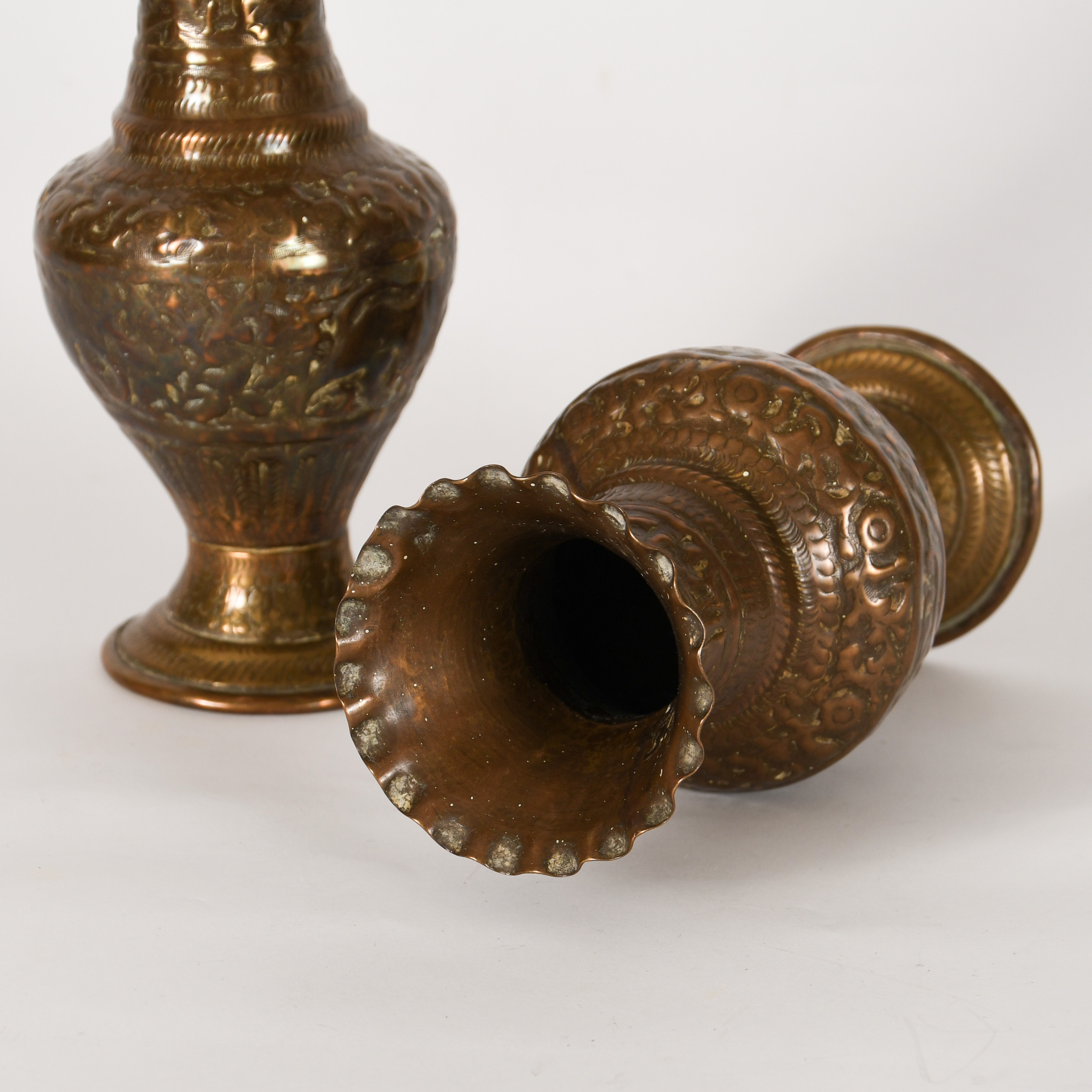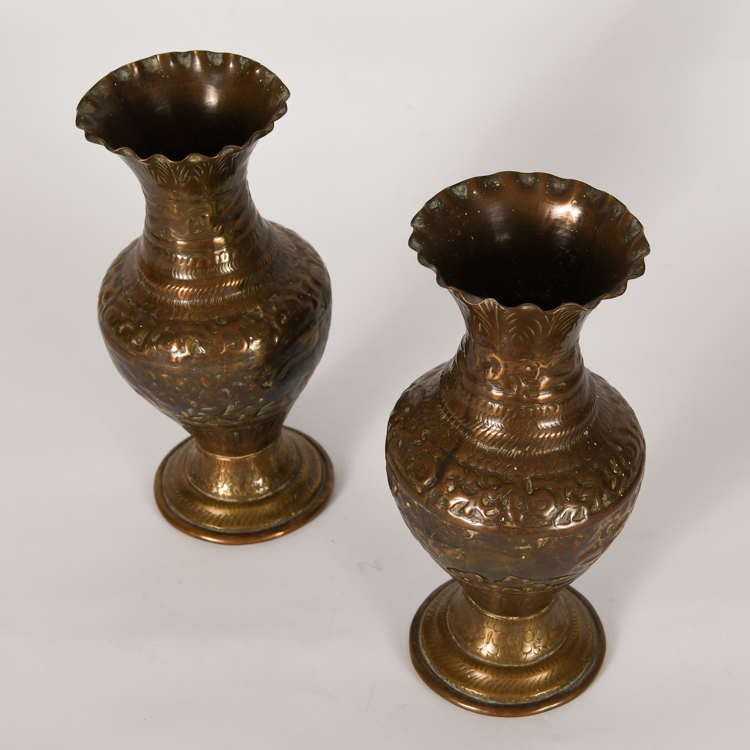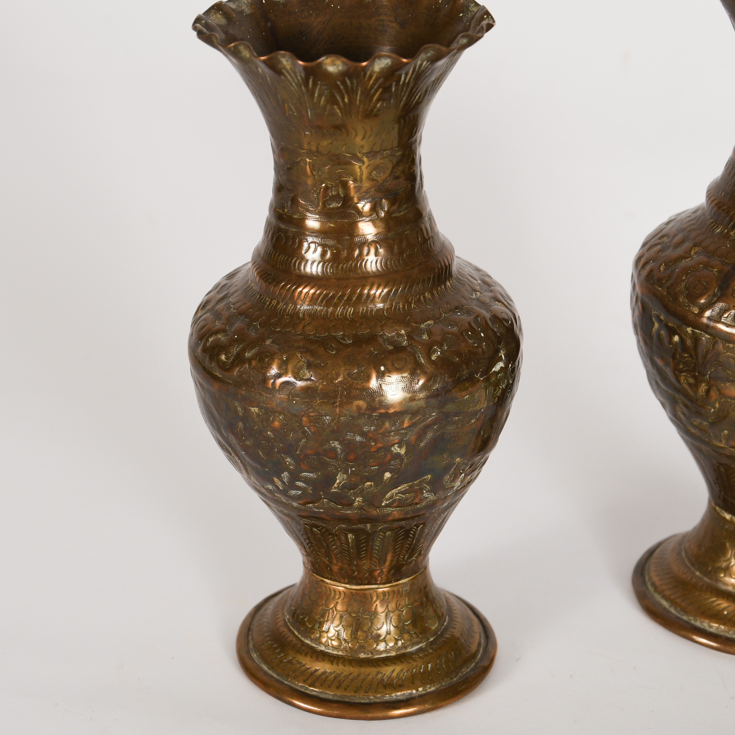 Brass Vases with South American Motif (pair)